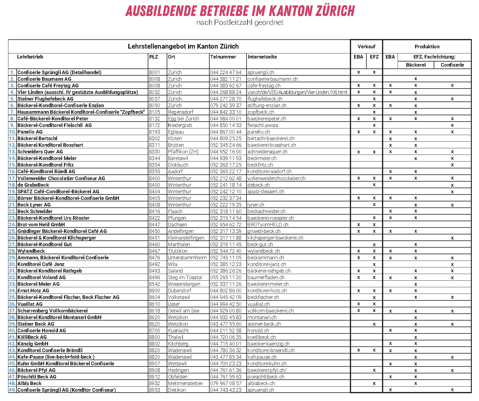 Adressen aller Ausbildungsbetriebe des Kantons Zürichs findest du hier -> Download